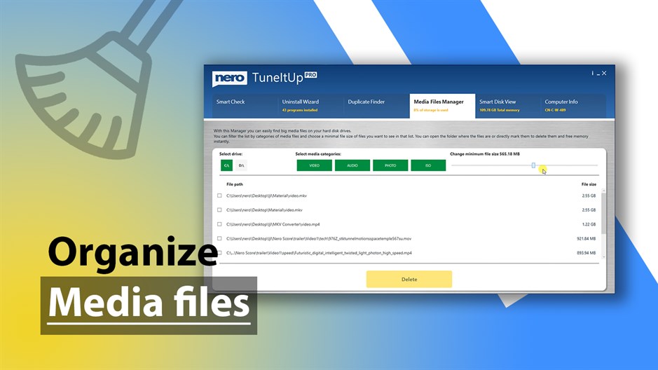 Troubled by trash files? Suppose you have problems organizing and deleting files that occupy a large part of your storage. What you need is a PC cleaner like Cleaner+(original: Nero TuneItUp) which created by Nero to boost your PC efficiency!