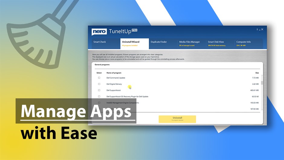 Outdated drivers have a negative impact on the security, performance, and stability of your PC. Nero TuneItUp PRO searches its large database for driver updates and installs them when necessary. Are you sure that the programs on your PC are up to date? Nero TuneItUp PRO shows you all available updates and lets you download and install them. Keeping your drivers and programs up to date helps you close dangerous security gaps and lets you benefit from the latest functions and features.